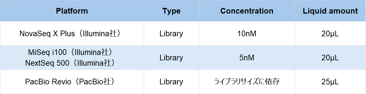 ※お客様の方でライブラリを1チューブに混合(Pooling)いただいたものをお送りください。